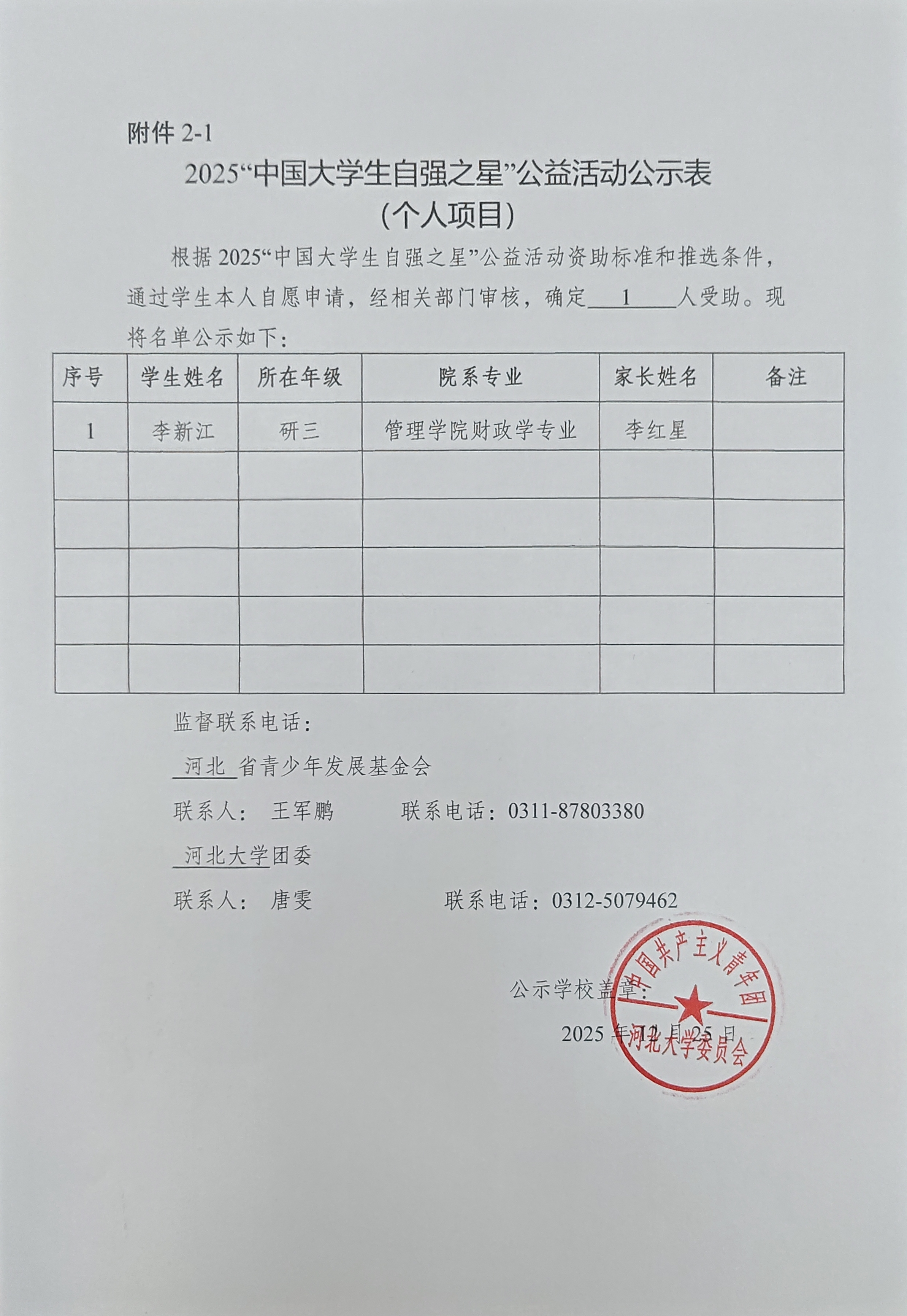 2025“中国大学生自强之星”公益活动公示表 (个人项目)