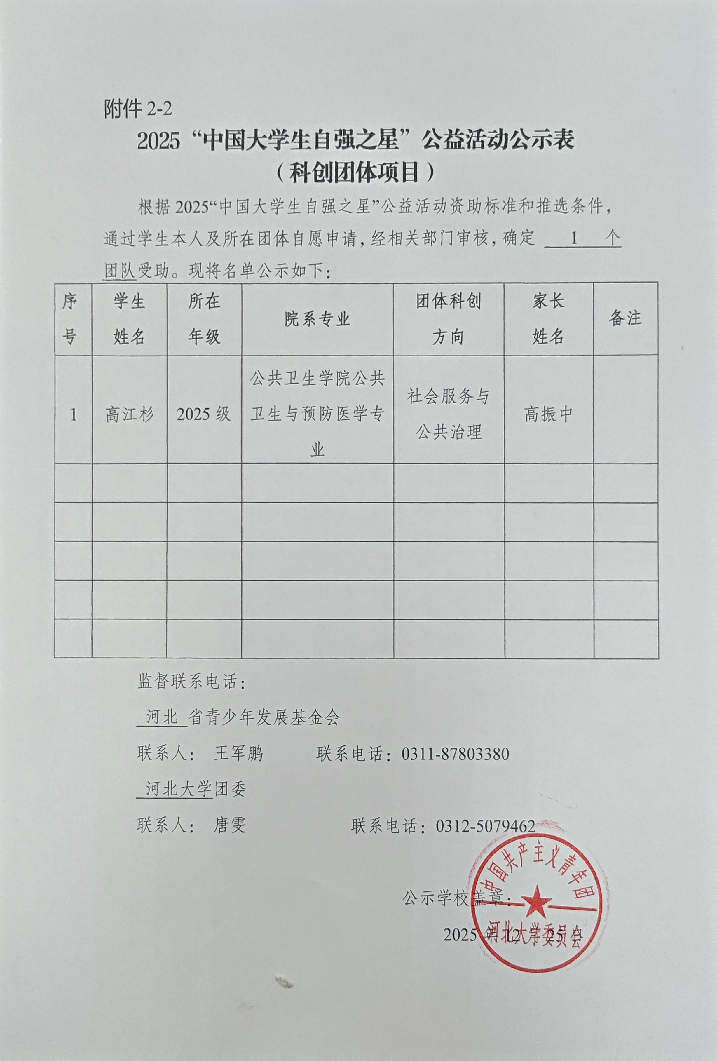 2025“中国大学生自强之星”公益活动公示表 (科创团体项目)