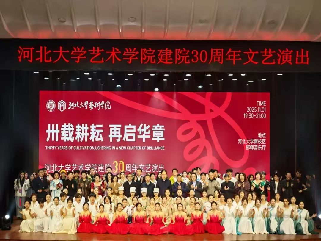 11月1日,“卅载耕耘、再启新篇——河北大学艺术学院建院30周年文艺演出”在邯郸音乐厅隆重举行。学校领导、校友代表、师生及各界嘉宾欢聚一堂,艺院学子以艺术汇报演出回溯学院三十载耕耘历程,共绘未来发展蓝图。