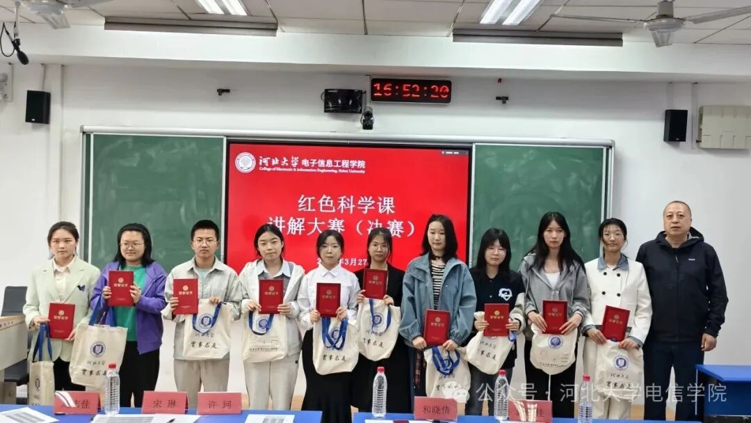 为纪念中国人民抗日战争暨世界反法西斯战争胜利80周年,传承革命先辈廉洁奉公、艰苦奋斗、科学救国的红色品格,我校于2025年12月正式启动第二届红色科学课讲解大赛。本次大赛由校团委与电子信息工程学院联合主办,以抗战精神铸风骨,科学报国勇争先为主题,将红色基因、科学精神与廉洁修身教育深度融入课堂实践,引导青年学生从红色历史中汲取力量、在科学探索中坚守初心、于时代征程中涵养清风正气。决赛于2026年3月27日顺利举办。大赛特邀保定市一中分校原校长、莲池区政府督学和晓倩,河北大学校团委教师许珂,河北大学赴新疆生产建设兵团兴新职业技术学院援疆教师赵丽佳,电子信息工程学院团委教师刘志佳、团委副书记宋琳组成专业评审团。电子信息工程学院党委副书记杜凯华出席活动并致辞,向全体参赛选手、指导老师及评审嘉宾表示诚挚欢迎与衷心感谢。 大赛伊始,活动特别邀请新疆生产建设兵团兴新职业技术学院俞静同学作为展示嘉宾,以线上连线方式参与交流。她带来一堂生动鲜活的红色科学课,紧扣大赛主题,将兵团红色历史、科学实践与兵团建设者廉洁奉公、无私奉献的精神内核有机融合,充分展现了边疆青年深厚的爱国情怀与使命担当。此次跨区域连线展示,搭建起内地高校与新疆兵团院校思政教育互通互联、红色文化共建共享的桥梁,推动爱国主义教育、科学精神与廉洁文化在两地青年中同频共振、同向育人,进一步铸牢中华民族共同体意识。 在决赛展示环节,各参赛团队根据小学、中学、大学不同组别的受众特点,进行差异化教学设计。现场既有生动形象的科学故事讲述,也有严谨系统的知识原理阐释,还有融合专业特色的创新实验演示。学院戎耀班同学充分发挥模范带头作用,以扎实严谨的态度和昂扬向上的风貌,传承红色精神。参赛者通过多媒体课件、实物模型、情景演绎等形式,把红色科学精神转化为可感可知的教学内容,以革命先辈廉洁修身、艰苦奋斗的红色事迹为载体,在科学讲解中自然传递清正做人、务实治学的价值追求,让红色基因、科学知识与廉洁理念有机融合,引导听众在感悟科学魅力的同时,树立正确的世界观、人生观、价值观。 在评审过程中,评委团队从主题契合度、内容严谨性、叙事感染力与教学逻辑性等多个维度进行了系统、细致的综合评议。在具体指导环节,评审老师结合各学科的专业背景与思维特色,引导参赛团队将专业原理、科学知识与红色历史故事、清廉修身品格自然融合,让科学探索更有温度、精神传承更接地气,有效提升了作品的思想高度、专业深度与课堂感染力。 经过激烈角逐与专业评审,大赛奖项依次揭晓,颁奖环节有序进行,现场掌声阵阵,既是对获奖团队专业能力与思想素养的肯定,也是对所有参赛学子传承红色基因、践行廉洁理念、深耕科学探索的鼓励。本次比赛共评出特等奖三组、一等奖六组、二等奖六组、三等奖五组。获奖团队代表表示,将以此次大赛为契机,持续传承红色精神、钻研科学知识、坚守廉洁初心,努力成长为兼具专业本领与高尚品德的新时代大学生。 本次大赛是学校与学院推进“专业+思政”融合育人的重要实践,也是将抗战精神、科学教育与廉洁文化一体融入两大课堂的创新探索。大赛以红色为底色、以科学为载体、以廉洁为准则,引导青年学生在回望历史中坚定报国志向,在钻研学问中恪守清正底线,在实践历练中厚植家国情怀。未来,学院将持续搭建科技创新与思政育人平台,不断完善人才培养体系,把红色传承、科学精神与廉洁教育贯穿育人全过程,助力青年学生扣好人生“第一粒扣子”,努力培养担当民族复兴大任的时代新人。 |