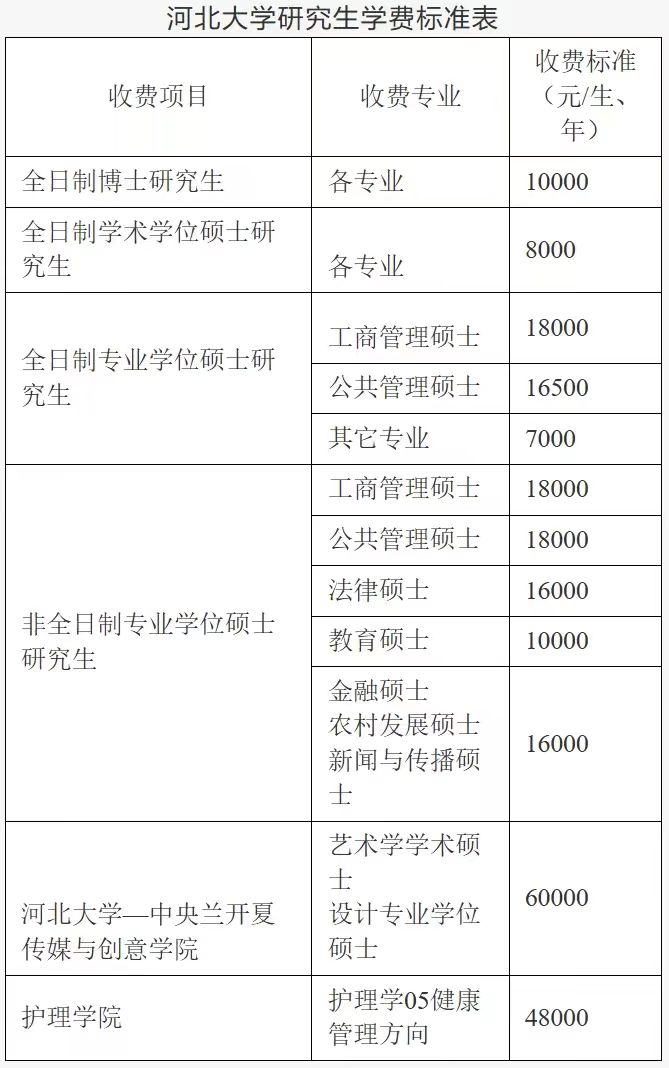 (二)研究生新生遇有特殊情况不能按时报到者,以书面形式向所属学院请假,请假时间一般不超过一周,自报到之日起7天内未经请假无故不到者视为放弃入学资格。 (三)硕士生准备纸质版《教育部学历证书电子注册备案表》(学信网查询、更新有效期打印)并注明学号、专业;境外获得学历的,需准备教育部留学服务中心出具的国外学历认证书原件和一份复印件。未获得相应学历者,将被取消录取资格。 (四)以硕博连读方式录取为博士生的新生,需携带硕士研究生证及其复印件一份。 (五)准备本人近期蓝底免冠小二寸照片10张备用。 (六)报到期间,保定站、保定东站及保定客运中心站均设有迎新接待站(8:00—18:00)。请需要接站的同学,于9月7日前扫描下方二维码填报相关信息。 (七)博士、硕士研究生新生报到地点为住宿所在校区,具体分布如下:五四路校区(保定市五四东路180号):教育学院、马克思主义学院、历史学院、宋史研究中心、国际交流与教育学院、数学与信息科学学院、物理科学与技术学院、生命科学学院、基础医学院、临床医学院、中医学院、护理学院、公共卫生学院、药学院、生态环境系、第六临床医学院。七一路校区(保定市七一东路2666号):哲学与社会学学院、经济学院、法学院、文学院、新闻与传播学院、外国语学院、艺术学院、管理学院、化学与材料科学学院、电子信息工程学院、网络空间安全与计算机学院、质量技术监督学院、建筑工程学院、河北大学-中央兰开夏传媒与创意学院。 二、学籍注册 学校对2025级博士、硕士研究生入学资格进行审查,经审查合格的办理入学手续,注册学籍。有以下情形之一的,不予注册:(一)自报到之日起7天内未到校报到,且未履行请假手续或请假未获批准的;(二)未完成学费缴费,且未办理助学贷款或未办理暂缓缴费申请审批手续的;(三)新生入学资格存在问题的;(四)新生的录取通知、考生信息等证明材料,与本人实际情况不符;或有其他违反国家招生考试规定情形的;(五)已申请支教团等保留入学资格且获得批准的。凡属弄虚作假、徇私舞弊取得学籍者,无论何时发现,一经查实,即取消其学籍。情节恶劣的,提请有关部门查究。 三、费用缴纳 (一)收费内容 1.学费标准 2.住宿费标准:800元、1200元/生/年。3.体检费:100元/生。4.注:教材费为本科生选缴项目,研究生不需缴纳。 (二)缴纳方式需通过河北大学“校园缴费平台”(网址:http://plat.hbu.cn/)缴纳上述费用,用户名为录取通知书中的学生学号,无初始密码,请登录https://cas.hbu.edu.cn/ 进行新生密码初始化设置。缴费流程详见河北大学财务处网站(网址:http://cwc.hbu.edu.cn/),“业务流程”-“河北大学校园缴费平台使用流程(视习惯选择 pdf、word 格式文件)”。为保证广大同学顺利办理入学手续,及时完成学籍注册,请务必于8月20日前缴纳相关费用。 (三)现场自选缴费公寓床上用品费不通过河北大学“校园缴费平台”,在新生报到现场自愿订购并缴费,全套床上用品费用共计384元,包括棉被、棉褥、三件套(床单、被罩、枕套)、枕芯、硬质棉床垫、枕巾、蚊帐各1件,全套用品已通过河北省纤维检验局合格检测。 四、住宿 (一)硕士研究生。全日制硕士研究生由学校统一安排宿舍,缴费开通后,平台上显示硕士研究生住宿校区、公寓名称、宿舍号、床位号等住宿信息,新生到所住校区公寓楼值班室办理住宿手续,安放好行李后再到学院报到。非全日制硕士研究生原则上不安排住宿,如需住宿,可先在报到学院登记,相关信息汇总后,学生公寓管理服务中心视情况协调解决。 (二)博士研究生。全日制博士研究生由学校统一安排宿舍,五四路校区博士新生前往北院梅三学生公寓“一站式”社区服务大厅办理住宿手续(0312-5079410),七一路校区博士新生前往德新园1号公寓123办公室办理住宿手续(0312-5929917),办理完成住宿手续后,再在缴费平台上缴纳住宿费。 五、党、团关系及档案转接 自带个人档案和党、团员组织关系的非定向博士、硕士研究生,报到后将档案和党、团员组织关系交各学院(中心)。具体可参照河北大学研究生院“关于2025年待录取硕士研究生党团关系、档案转接相关事宜的通知”(https://yjsy.hbu.edu.cn/info/1159/3906.htm) 六、户籍事项 新生可自愿选择是否将户口迁入学校。凡选择将户口迁入学校的新生须持当地公安部门开具的《户口迁移证》(河北省外)或《常住人口登记卡》(河北省内)原件和复印件各1份,(在“迁移证”或“登记卡”原件右上角用铅笔标注本人身高、血型、手机号);《录取通知书》原件1份、复印件2份;本人的出生证复印件2份。《户口迁移证》或《常住人口登记卡》上的姓名必须与身份证及录取通知书上的姓名完全一致,同时必须盖有公安部门的公章及户籍专用章。学生本人带上述材料到学校户籍室办理(五四路校区北院临街楼2单元224室),由户籍室开具《落户介绍信》后,持上述材料到辖区派出所进行图像采集,完成落户。《户口迁移证》的迁移地址一律填写“河北省保定市河北大学”;新生落户须在报到之日起40天内办理,逾期不再接收。迁入后,除退学、转学外,在校学习期间户口不予迁出。 七、一卡通及银行卡 学校统一为学生制作了校园卡,新生报到时到学院领取。校园卡是学生在校内“综合消费”和“身份识别”的重要介质,主要用于食堂、浴