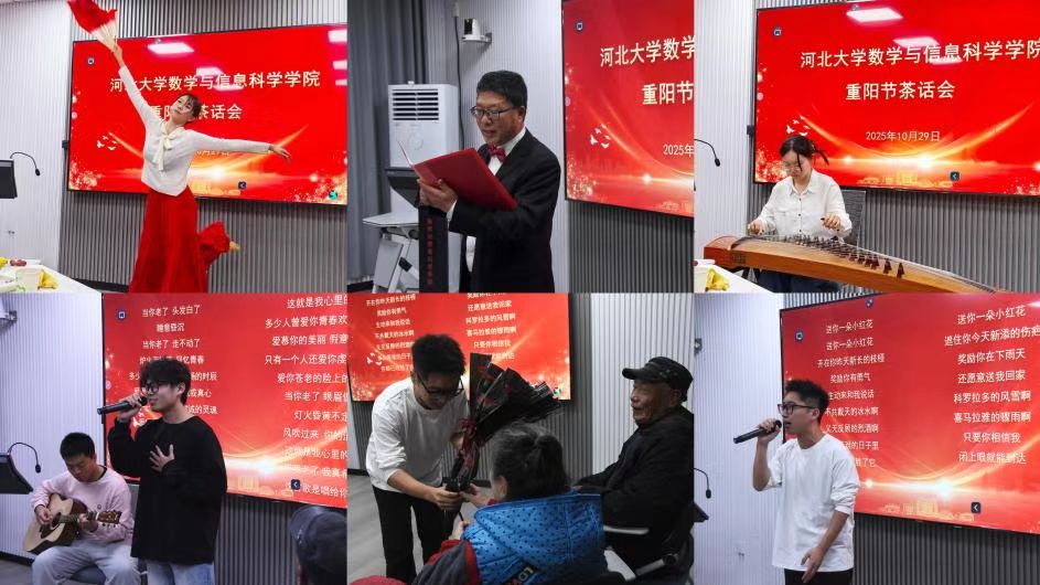 10月29日,数信学院开展“情暖重阳,共话发展”主题茶话会,在保11位退休老教师欢聚一堂。学院领导班子成员、部分教师代表以及学生志愿者一同参加了活动。同学们献上精心筹备的文艺节目,在团学实践中彰显青春担当,为茶话活动注入青春力量。