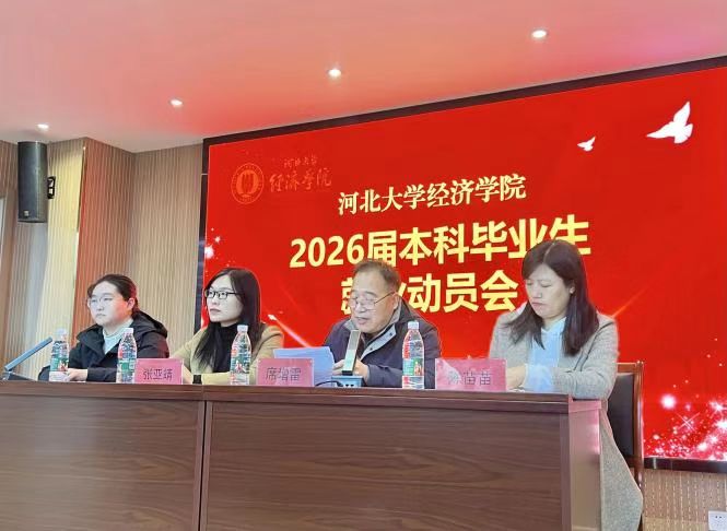 10月24日,经济学院在七一路校区C2-306报告厅召开2026届本科毕业生就业动员会。经济学院副院长席增雷、河北大学创新创业指导中心就业服务办公室主任张亚靖、经济学院教务科长陈苗苗及本科毕业班辅导员出席会议。