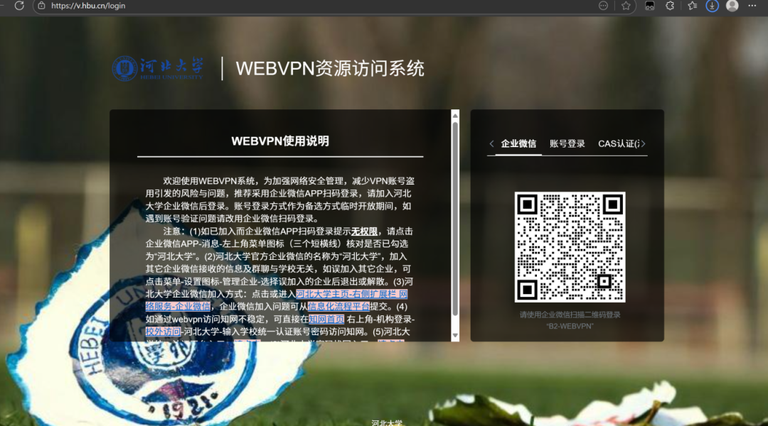 此网站为河北大学vpn入口,从此页面登录之后就可以在校外访问学校内部相关网站啦! 河北大学上网登录窗网址 gate.hbu.edu.cn