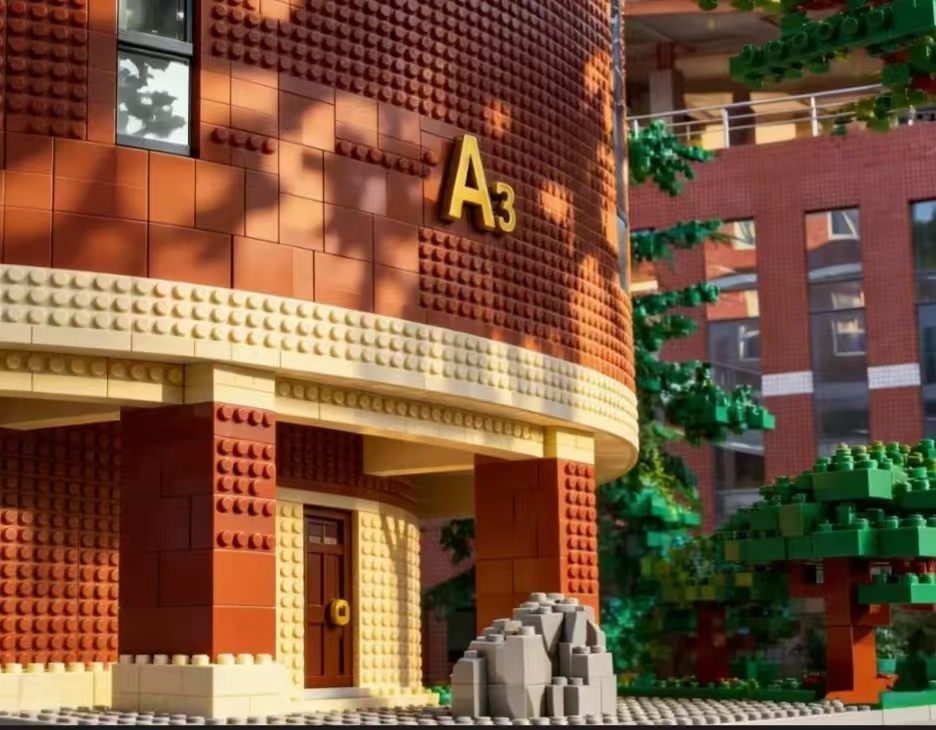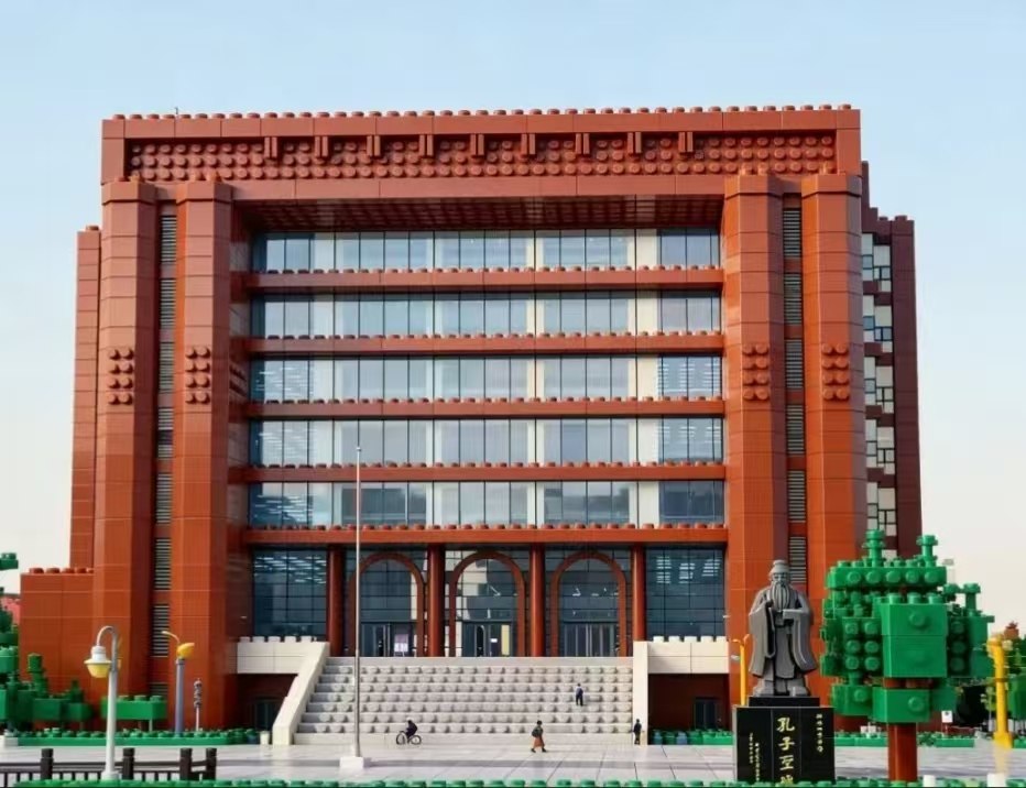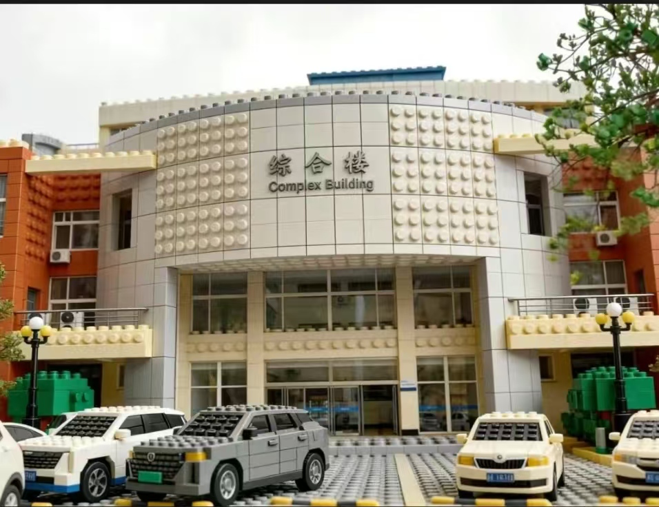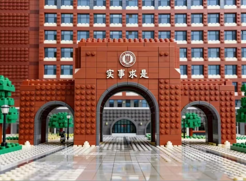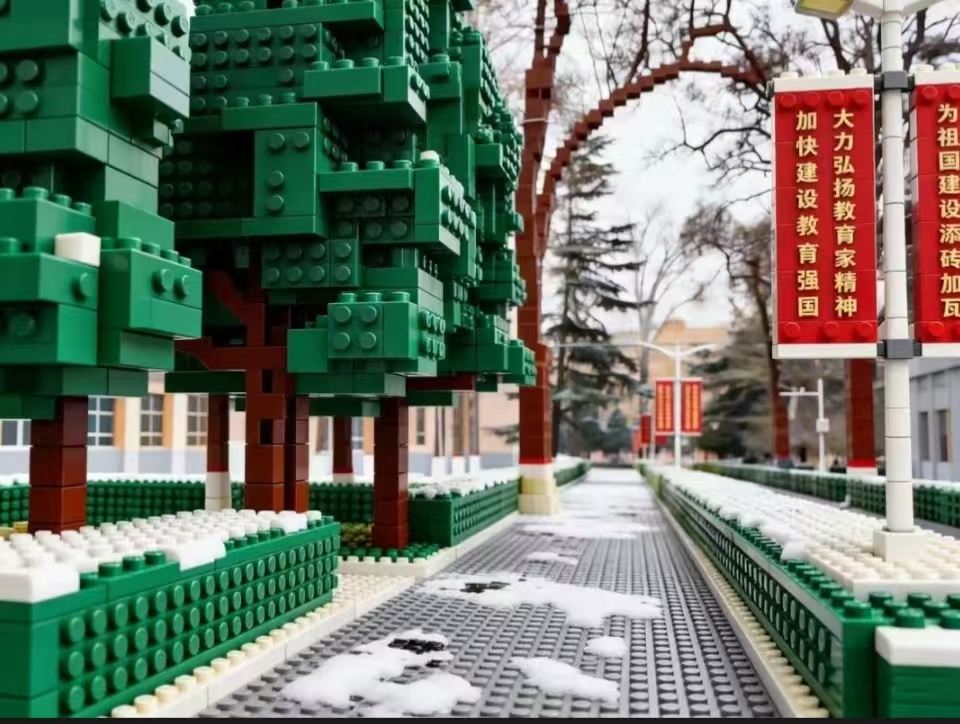 河大教学楼 积木层层叠 拼出河大青年的奋斗身影 阳光穿过乐高窗户 课堂专注都照亮 在叮铃拼搭声里 知识变身升级秘籍